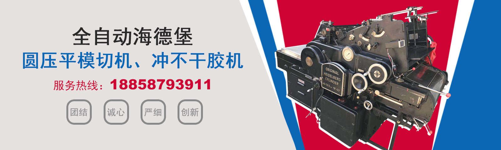 瑞安市恒柯機械廠(www_wzhkjx_com.tjhxgw.com)是國內專業制造銷售全自動模切機,全自動燙金機,圓壓平模切機,圓壓平燙金機,滾筒燙金機,沖不干膠機,海德堡凸印機.銷售的產品系列規格齊全,產品具有速度快,壓力均勻,套印準確等特點。